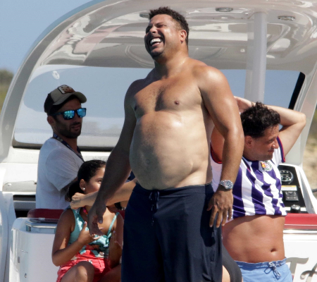 O ex-jogador de futebol Ronaldo está curtindo a vida boa da aposentadoria na Ilha Formentera, na Espanha. O craque foi clicado em um iate ao lado de sua família no domingo (18). As informações são da Quem.