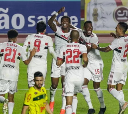 E o atropelo tricolor só não ficou maior porque a arbitragem marcou impedimento de Benítez no gol de William. Assim, coube ao Mirassol se conformar com a eliminação sendo goleado no Morumbi.