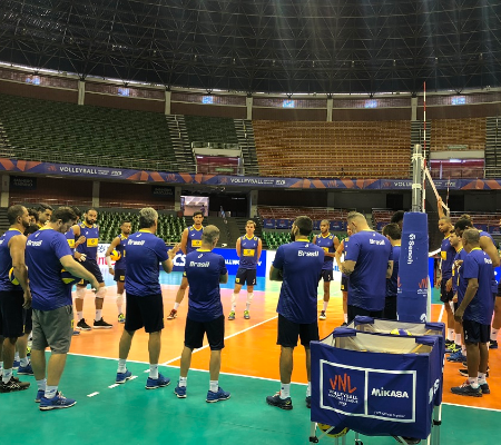 A seleção brasileira masculina de vôlei chegou a Brasília (DF) e já fez o primeiro treino no ginásio Nilson Nelson, onde disputará a quinta e última etapa da Liga das Nações. Nesta quarta-feira (26), a equipe dirigida pelo técnico Renan fez o trabalho de preparação para as partidas contra França, Canadá e Itália, que serão na sexta (28.06), no sábado (29.06) e no domingo (30.06), neste mesmo local – todos com transmissão do SporTV 2.