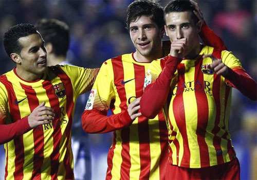 Sem o brasileiro Neymar, que se recupera de lesão, o Barcelona voltou a campo nesta quarta-feira, pelas quartas de final da Copa do Rei, e desencantou apenas no segundo tempo para garantir outro importante triunfo que o colocou muito próximo da próxima fase da competição. O time catalão visitou o Levante, em Valencia, saiu atrás do placar, mas conseguiu a virada já na volta dos vestiários, construindo uma goleada no fim, com uma bela atuação do garoto Tello: 4 a 1.