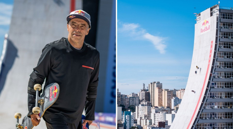 A ação promovida pela Red Bull com apoio do Governo do Rio Grande do Sul foi batizada de "Building Drop" e transformou o prédio de 21 andares e 85 metros de altura em uma rampa gigantesca, montada na ala norte do edifício icônico da capital gaúcha.