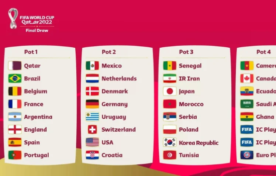 - As seleções serão divididas em quatro potes, cada um com oito equipes, separadas pelo ranking atualizado da Fifa, divulgado na quinta-feira. A única exceção é a equipe do Qatar, que sedia o torneio, e será alocado como cabeça de chave do Grupo A.
