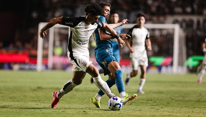 O Timão começou a partida com dificuldades na saída de bola, mas aos poucos conseguiu se organizar e criar boas chances. Breno Bidon aproveitou uma falha de Zé Lucas e acertou um chute forte que explodiu na trave. Na sequência, Vitinho arriscou de fora da área e obrigou o goleiro Gabriel a uma defesa difícil. O Sport também tentou responder: aos 41 minutos, Derik chegou a balançar as redes, mas o lance foi anulado por impedimento.