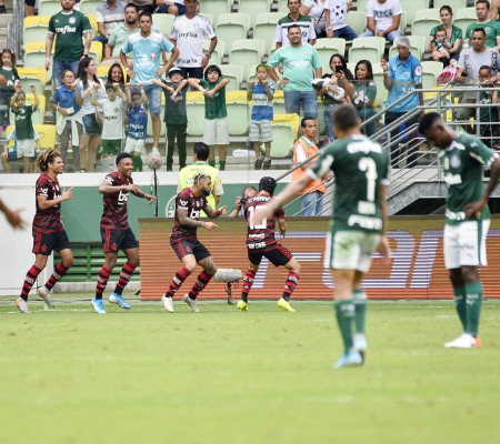 O STJD analisou ocorrências na partida vencida pelos cariocas por 3 a 1 no estádio palmeirense, em São Paulo. Na súmula do confronto, o árbitro Ricardo Marques Ribeiro relatou o arremesso de um chinelo e de dois assentos em direção aos atletas do Flamengo.