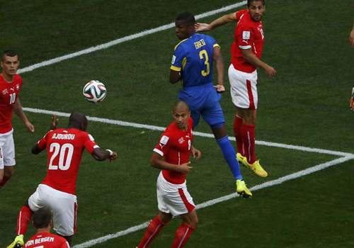 A última seleção a ter derrotado o Brasil - em amistoso disputado no ano passado, na Basileia-, a Suíça precisou de muita garra e persistência para vencer o Equador, neste domingo, em Brasília. Com dois gols no segundo tempo - sendo que o último foi marcado aos 48min, após lindo contra-ataque -, a equipe comandada por Ottmar Hittzfeld venceu por 2 a 1 e estreou na Copa do Mundo com um importante resulltado.