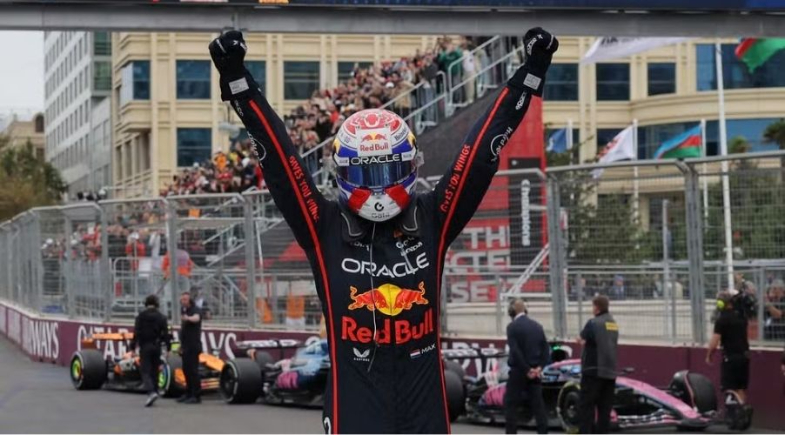 Max Verstappen celebra vitória no Azerbaijão | Foto: Reuters