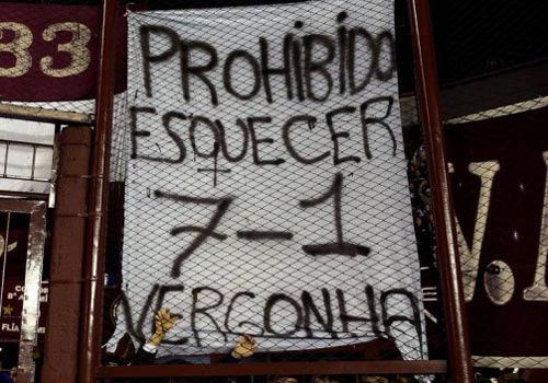 "Proibido esquecer. 7 a 1. Vergonha", estava escrito na faixa.