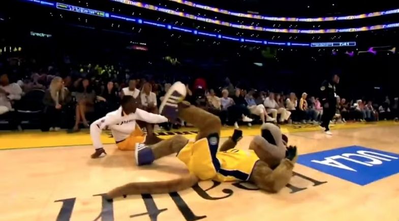 O que era para ser apenas uma apresentação divertida no intervalo da partida entre Los Angeles Sparks e Las Vegas Aces, pela WNBA, acabou em susto na Crypto Arena, em Los Angeles, na noite da última terça-feira (29). Durante uma sequência de acrobacias, um artista acabou acertando um chute na cabeça da mascote Sparky, que caiu imediatamente no chão da quadra.