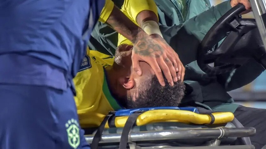 A contusão ocorreu em uma disputa de bola com o meio-campista De La Cruz, do Uruguai, resultando na torção do joelho e no rompimento do ligamento cruzado anterior (LCA) do joelho esquerdo de Neymar. O período de recuperação para esse tipo de lesão é extenso, variando entre 9 e 12 meses.