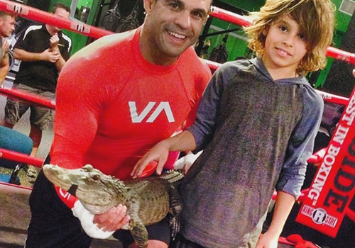 Um recado para o campeão Chris Weidman? Próximo desafiante ao cinturão dos médios do UFC, Vitor Belfort postou uma mensagem em sua conta no Instagram com um quê de indireta. Nela, o brasileiro diz que "duelou" com um crocodilo e "fechou a boca dele", e aparece na foto ao lado do réptil, que está com uma fita na boca, e do filho mais velho, Davi. O Ultimate deve anunciar em breve uma data para o combate entre Belfort e Weidman, valendo o cinturão até 84kg.