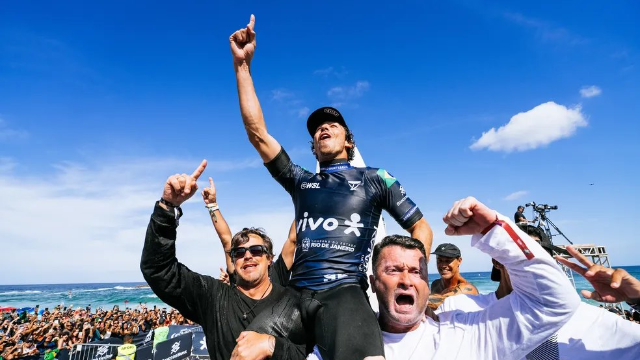 Neste sábado (1°), o surfista brasileiro Yago Dora venceu o australiano Ethan Ewing e conquistou o título da etapa de Saquarema da Liga Mundial de Surfe (WSL). Yago Dora encerrou a final com uma pontuação total de 14.83 (10.00 e 4.83), superando os 10.83 (6.00 e 4.83) obtidos por Ethan Ewing. O destaque da bateria foi o impressionante aéreo executado por Yago, já nos momentos finais, quando ele já liderava a disputa, mas buscava ampliar sua vantagem sobre o surfista australiano.