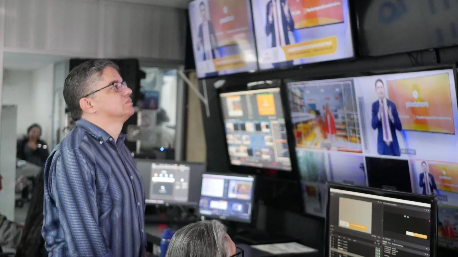 Diretor de Jornalismo, Marcos Monturil coordena equipe durante gravações | Foto: Raíssa Morais