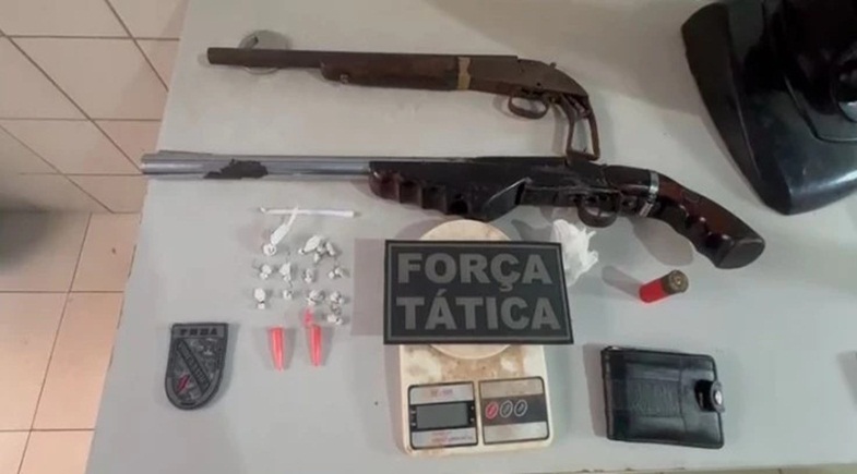 Armas, droga e balança foram apreendidas pela Polícia Militar | Foto: Divulgação