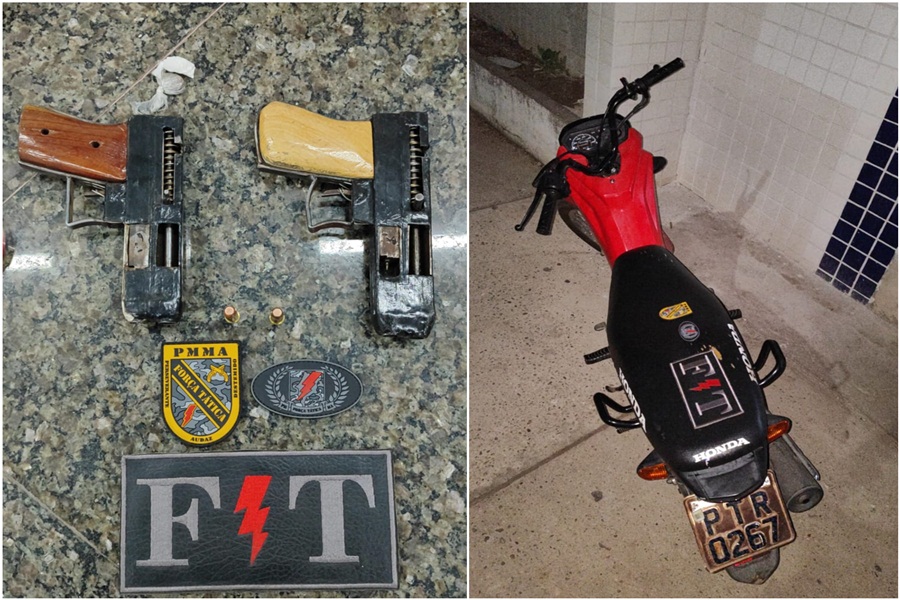 Durante a abordagem, os policiais constataram que a motocicleta em posse dos suspeitos havia sido roubada. Além disso, o casal havia descartado uma arma de fogo de fabricação artesanal durante a tentativa de fuga, que foi recuperada pelos agentes. Ao revistá-los, também foram encontradas drogas, as quais, segundo os suspeitos, haviam sido adquiridas através da troca dos itens roubados.