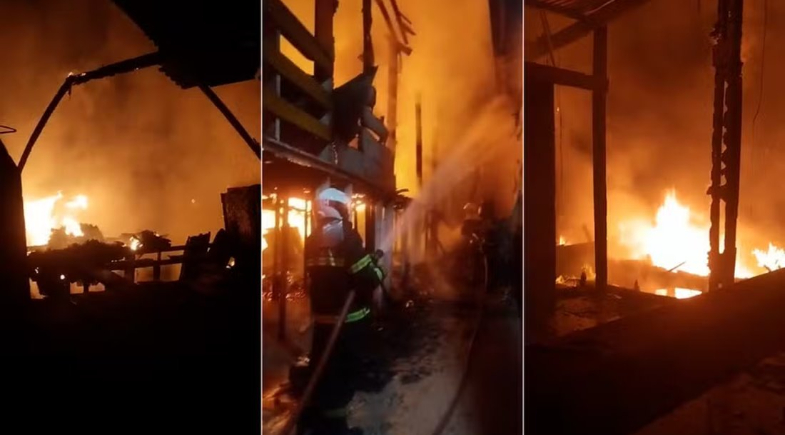 Um incêndio de grandes proporções atingiu o Bar Conterrâneos na madrugada desta quarta-feira (18), localizado na Avenida Atlântica, na Praia do Araçagy, em São José de Ribamar, na Região Metropolitana de São Luís.