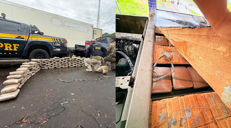Durante a abordagem, o motorista apresentou informações contraditórias, o que levou os agentes a realizarem uma vistoria minuciosa no compartimento de carga. No interior do veículo, foram encontrados 208 invólucros contendo substância com características semelhantes à skunk, totalizando 213 quilos da droga.