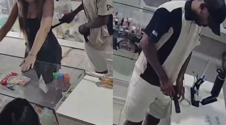 Conforme imagens de câmera de monitoramento da loja, o jovem chegou em posse de uma arma de fogo e anunciou o crime.