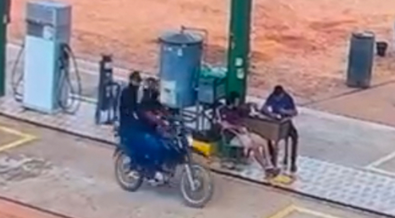 O crime aconteceu enquanto o frentista realizava atendimento no posto e estava sentando em uma mesa.