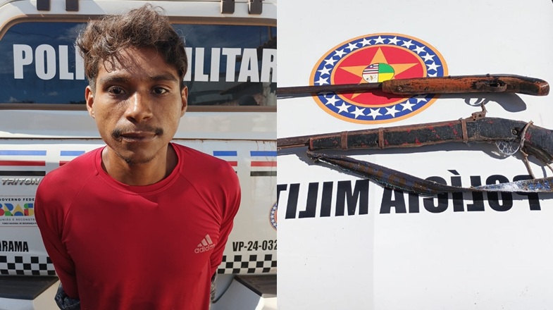 O acusado foi identificado e preso pela polícia. Durante a abordagem, foram encontradas com o homem duas armas de fabricação caseira.