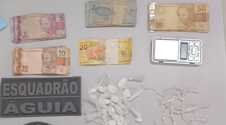 O suspeito ainda tentou fuga, mas foi localizado pelas equipes policiais. Foram apreendidos junto à ele 21 papelotes análogos a cocaína, 17 análogos a crack, 14 de maconha e 600,00 reais em dinheiro.