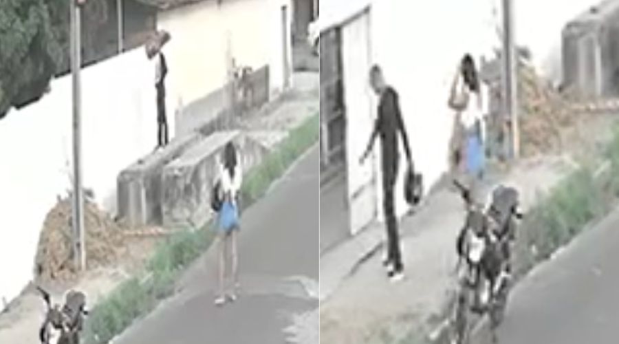 Nas imagens, é possível ver um homem e uma mulher chegando em uma motocicleta no estabelecimento de muro branco. O homem desce da moto, tenta abrir o portão, mas como não consegue, escala o muro e entra no imóvel. Em seguida, ele joga uma chave para a comparsa, que esperava do lado de fora.
