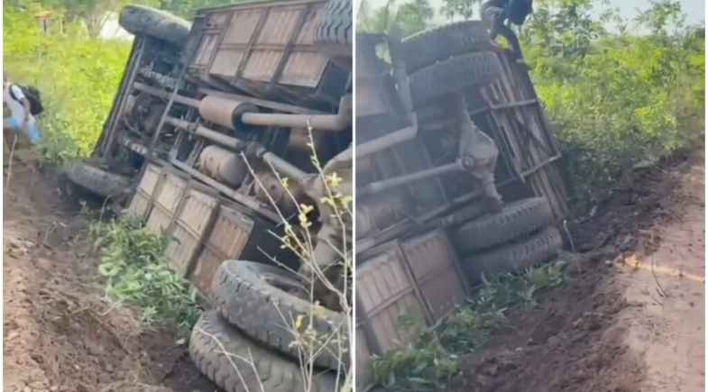 Um ônibus que transportava passageiros para um balneário tombou, nesta sexta-feira (30), na zona rural de Mata Roma, no interior do Maranhão. Um vídeo obtido pelo MeioNews mostra o veículo após o acidente em uma rua vicinal.