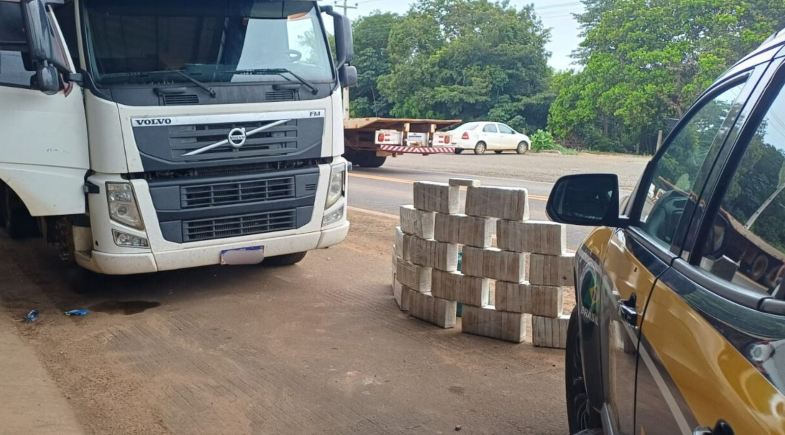 Diante das suspeitas, os policiais realizaram vistoria no semirreboque. O próprio condutor admitiu a existência de ilícito. Durante a inspeção, foram encontrados seis fardos contendo 40 tabletes cada, totalizando 240 volumes da substância, escondidos sobre o assoalho do compartimento de carga.