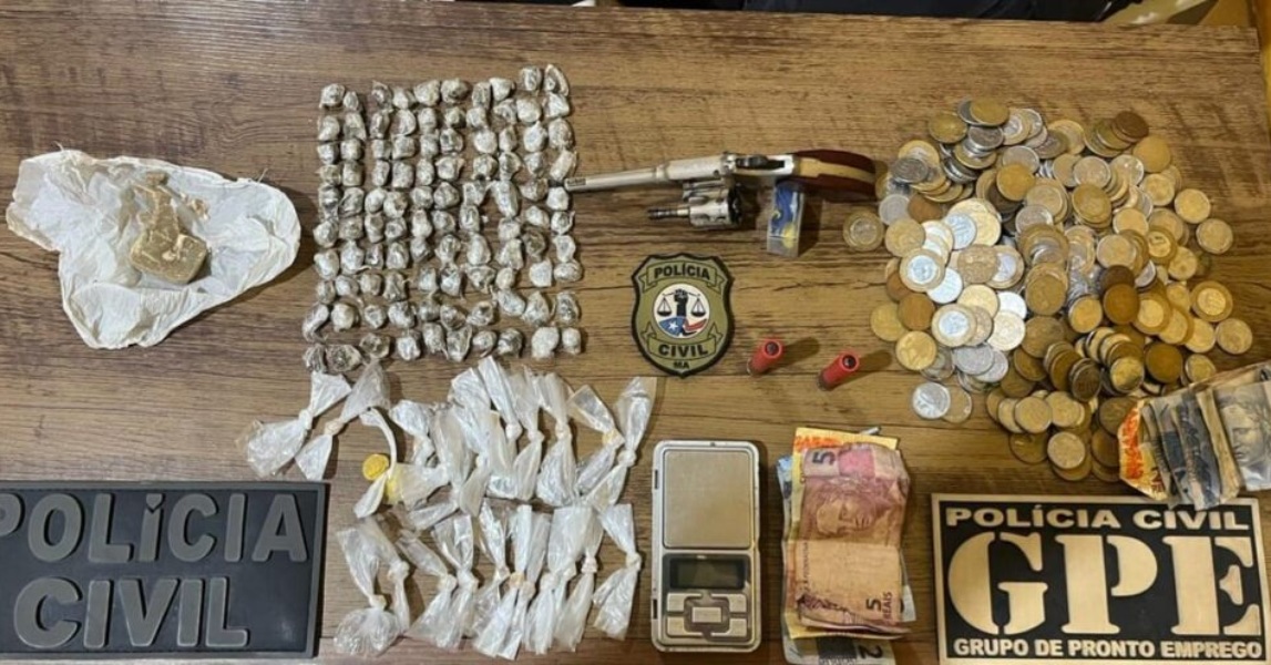 Durante a ação, as equipes policiais apreenderam uma arma de fogo calibre .22, 100 unidades de maconha, três pedras pequenas de crack, 24 pedras de crack, uma balança de precisão, duas munições calibre .36, além de outros materiais utilizados no tráfico de drogas.