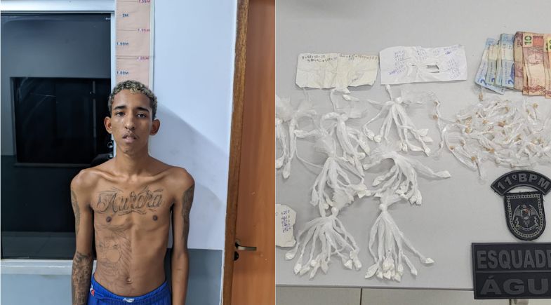 A prisão foi efetuada por policiais do Esquadrão Águia durante patrulhamento de rotina em uma área já conhecida pela atuação do tráfico. Mesmo tentando fugir, ele foi capturado pelos agentes. Durante a revista, os agentes encontraram 79 papelotes contendo substância semelhante à cocaína e 18 pedras aparentando ser crack.