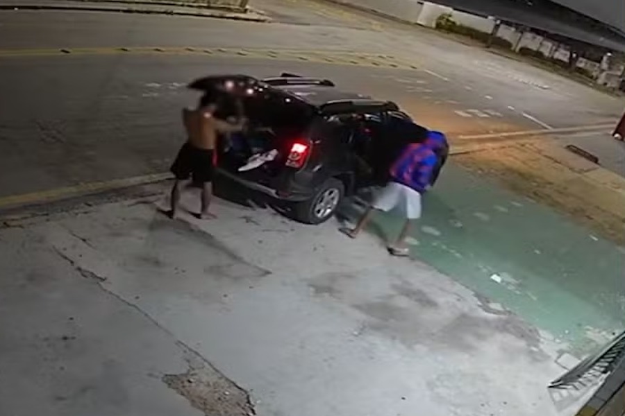 Nas imagens, é possível ver os autores do crime com um carro parado em frente à loja. Enquanto um deles fica segurando o porta-malas do veículo, outros dois invadem o estabelecimento comercial e levam todas as roupas que estavam expostas para a venda.