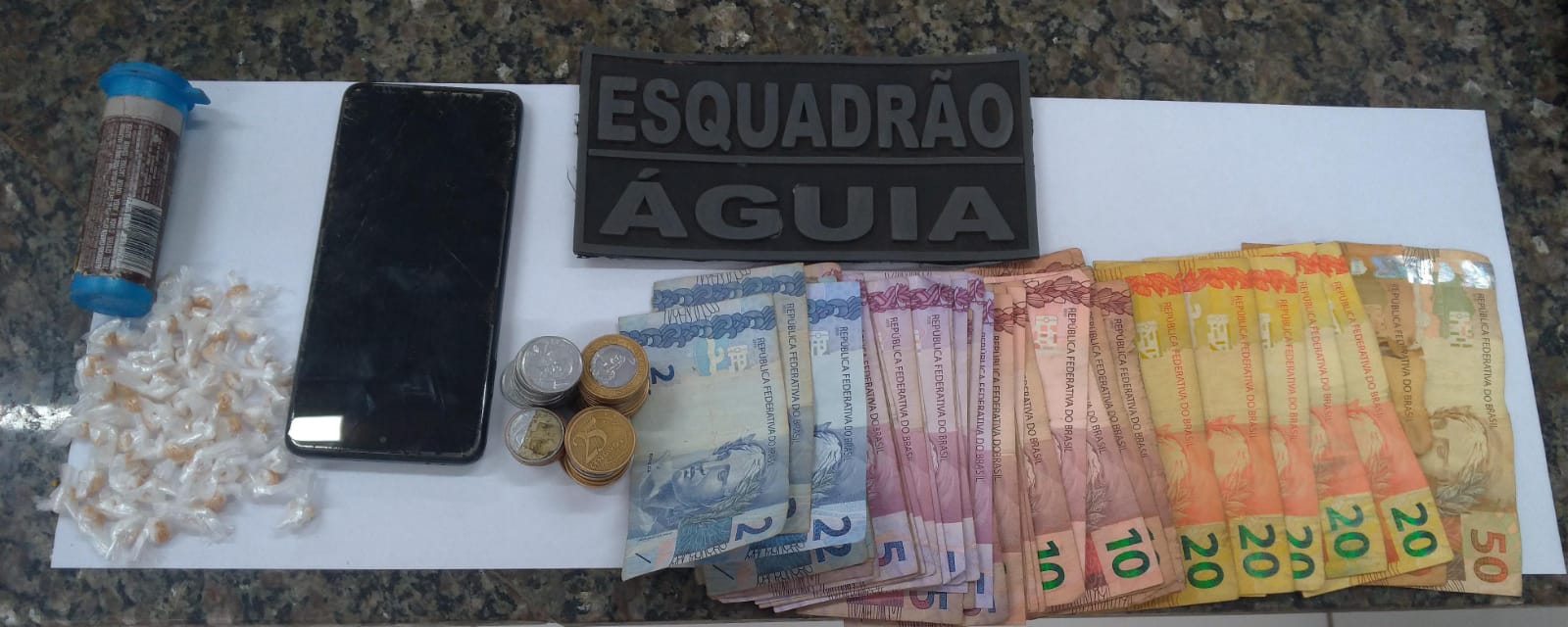 Com o adolescente, foram apreendidos droga, celular e uma quantidade de dinheiro | Foto: Reprodução