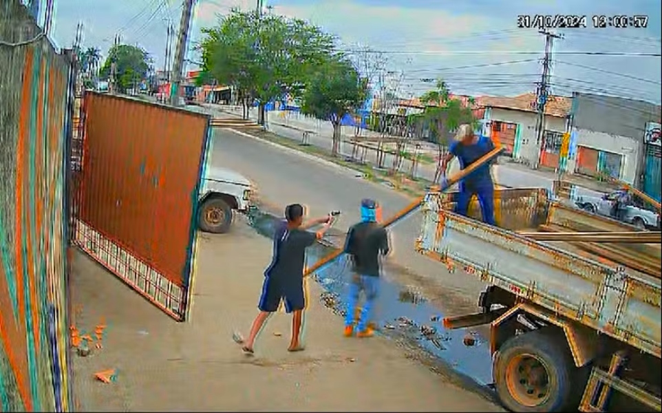Homem é baleado no local de trabalho no Maranhão. O crime foi registrado por câmera de segurança | FOTO: Reprodução