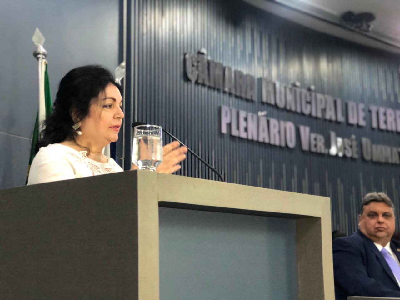 Em ambiente esvaziado, a Câmara recebeu a historiadora Marta Teresa Tajra, que falou sobre a importância histórica da capital do Piauí. Marta Teresa Tajra iniciou sua fala dizendo que não é de sua índole proferir palestras, mas sim de conversar com as pessoas. “Apesar de neta de imigrantes, sou daqui mesmo. Muita gente reclama daqui. Que é atrasada, calorenta. Mas somos um povo genoros. Temos uma geografia intensa. Aqui quando chove, chove memso. Quando tem raio, é muito. O calor também. O vento. Temos essa caraterística, somos intensos. Isso faz o contraponto com as pessoas, pois somos um povo da paz. Simpáticas, alegres, falantes”, revela.