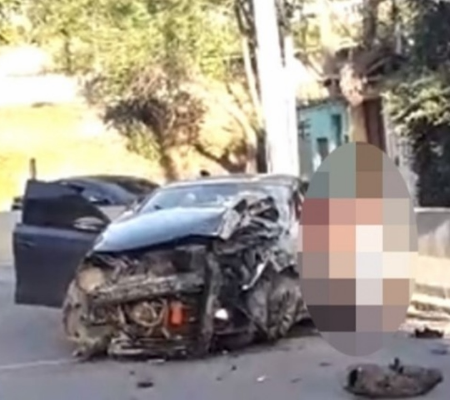 O carro pegou a saída, mas não conseguiu fazer a curva e bateu em um muro.