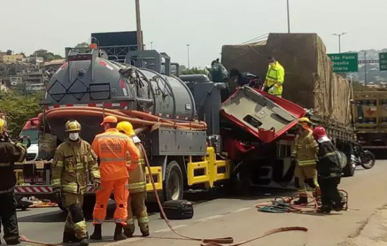 Segundo o Corpo de Bombeiros, as duas vítimas já foram retiradas das ferragens conscientes. Eram o motorista e o passageiro de um caminhão que bateram na traseira de uma carreta. Eles foram socorridos pelo helicóptero Arcanjo, do Corpo de Bombeiros.