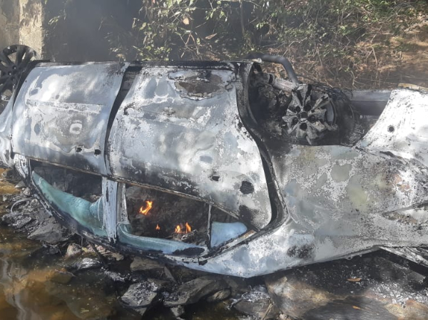 Carro pegou fogo após tombar | FOTO: Divulgação/PRF PI