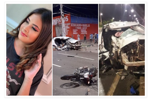 Pelas informações, descontrolado o veículo colidiu contra a motocicleta e capotou na via. Sem cinto de segurança, Raica Morais foi lançada para fora do veículo.