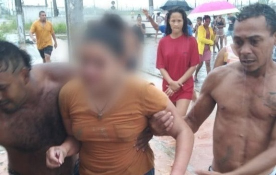 Nas imagens, também registraram uma mulher desesperada, sendo contida por outras pessoas. O vídeo mostra o bueiro onde a adolescente teria sido puxada.