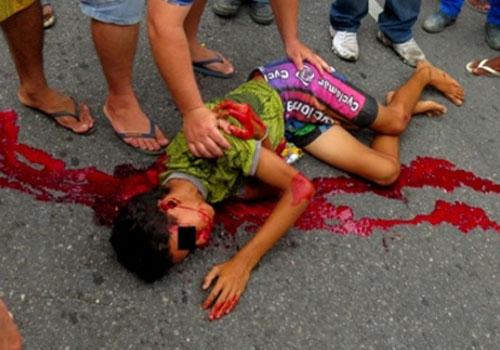 Por conta da velocidade e com o impacto o garupa, identificado pelo nome de Wallace Freitas do Nascimento, 17 anos, voou por cima do carro e bateu a cabeça no chão no momento da queda. Em seguida, começou a jorrar sangue de seu nariz, ouvidos e boca. O condutor da moto Antônio Afonso Leão do Nascimento, 20 anos, embora machucado ainda se sentou. Ele conduzia uma moto Fan de cor vermelha, sem placa. Ambos estavam sem capacete.
