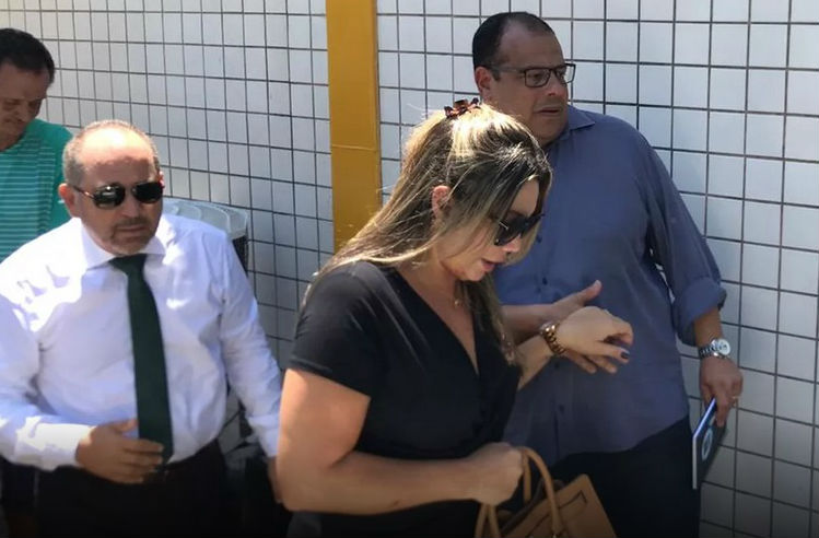 Elaine chegou acompanhada do advogado, Evandio Bianor dos Passos Filho, e de um casal de amigos que a hospedam em casa, no Recreio dos Bandeirantes, na Zona Oeste do Rio. Elaine foi violentamente espancada por quatro horas no apartamento onde mora na Barra da Tijuca, na madrugada de sábado (16). O suspeito de cometer as agressões, Vinícius Serra, 27 anos, está preso por tentativa de feminicídio.