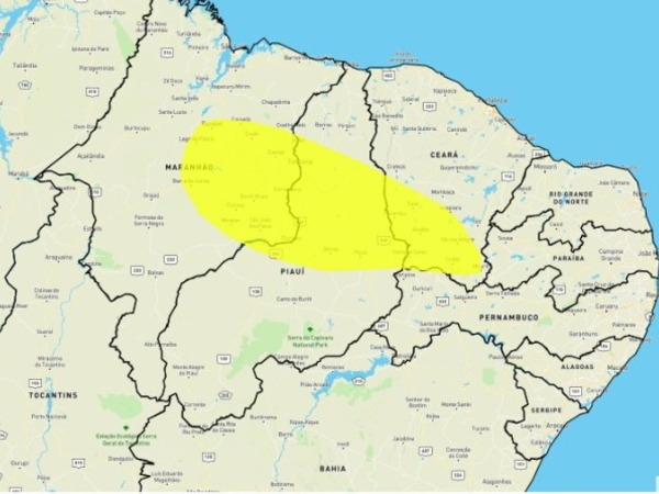O Instituto Nacional de Meteorologia (Inmet) emitiu, na manhã desta segunda-feira (14), um alerta de chuva na cor amarela (perigo potencial) para 102 cidades do Piauí. O aviso meteorológico é válido até as 8h de terça-feira (15). Entraram na lista alguns municípios situados nas regiões Centro-Norte, Sudeste e Sudoeste do estado. (Veja a lista abaixo).