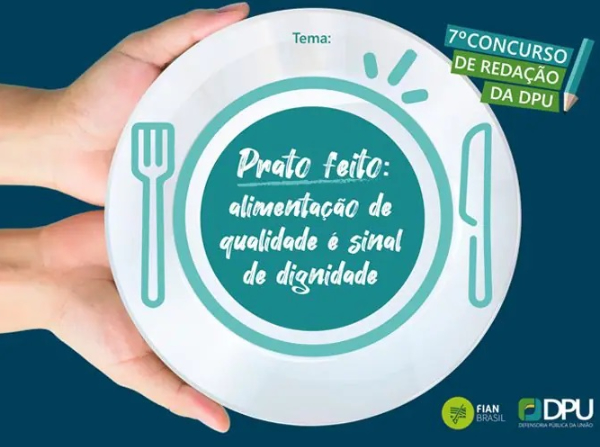 A Defensoria Pública da União (DPU), realizou um concurso de redação, com o tema “Prato feito: alimentação de qualidade é sinal de dignidade”, o concurso é realizado anualmente e chegou a 7ª edição, sendo exigido no formato dissertativo argumentativo com a exigência de no mínimo 20 linhas.