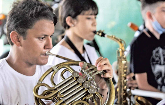 Ao som de músicas como Viva La Vida, do Coldplay, ou Yesterday, dos Beatles, eles dão show. Os jovens querem futuros tão brilhantes como o metal dos instrumentos que tocam. Maria Eduarda, de 16 anos, toca trompete. “Quero me profissionalizar e quero muito seguir a carreira musical. As músicas que mais gosto de tocar são as do Roberto Carlos”, aponta a jovem.