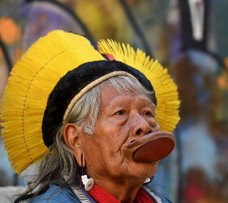 Raoni, ícone dos povos indígenas da Amazônia, tornou-se internacionalmente conhecido como um defensor do meio ambiente na década de 1980 com o cantor Sting ao seu lado.
