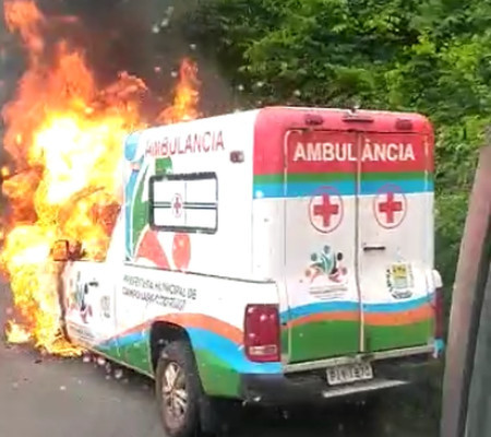 Na manhã desta quarta-feira (20), uma ambulância do município de Campo Largo do Piauí (173 km de Teresina) pegou fogo quando trafegava pela PI-112.