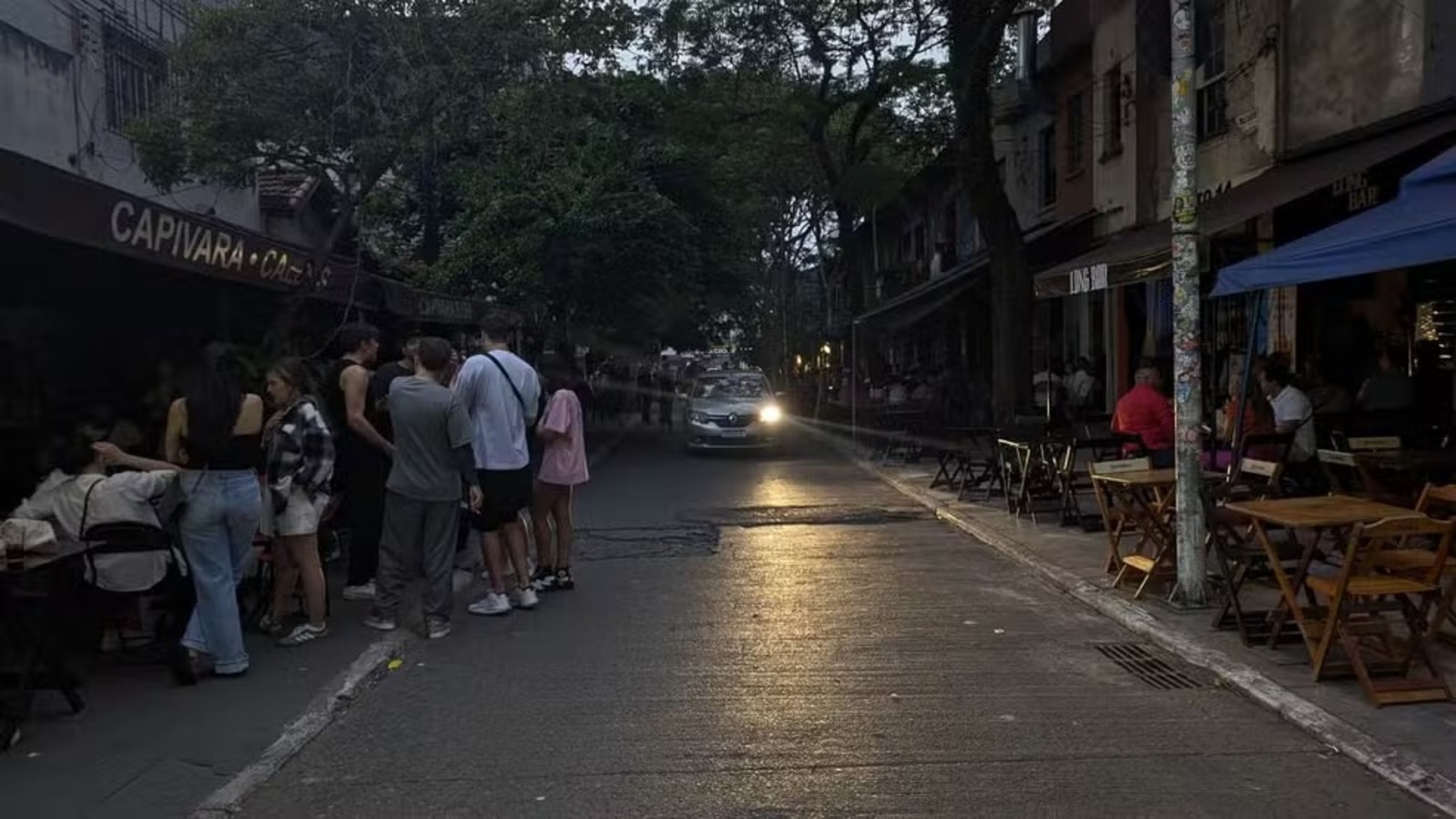 Rua de bares em Pinheiros sem luz, mas com clientes — | Foto: Fábio Tito/g1