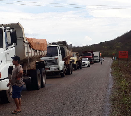 A estrutura ficou sobre a rodovia e impediu que vários caminhões, veículos de passeio e motociclistas passassem sobre os fios energizados com 138 volts de potência.