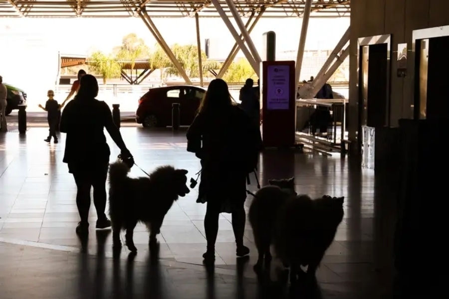 Tutores de cães da raça golden retriever se reuniram neste domingo (28), no aeroporto de Brasília, para uma manifestação em defesa da regulamentação do transporte aéreo de cachorros de grande porte.