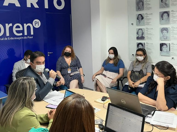 O plenário do Coren-PI recebeu os representantes na manhã de hoje para tratar dos ajustes necessários para a desinterdição. Estiveram presentes a gerente da Atenção Hospitalar, Roberta Berté, a diretora-geral da Maternidade Wall Ferraz, Liege Sampaio, e a gerente de enfermagem da maternidade, Maria dos Remédios Pereira. O promotor de Justiça Eny Pontes representou o MP-PI, participando da reunião de maneira remota.