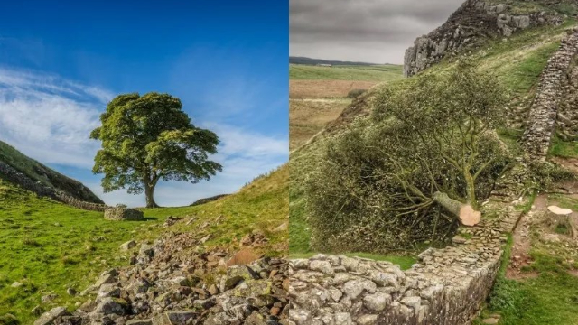 A árvore mais famosa e frequentemente fotografada do Reino Unido, situada nas proximidades da Muralha de Adriano, no nordeste da Inglaterra, foi derrubada em um ato provável de vandalismo, conforme relatado pelo responsável pelo parque nacional do condado de Northumberland, na quinta-feira, dia 28.